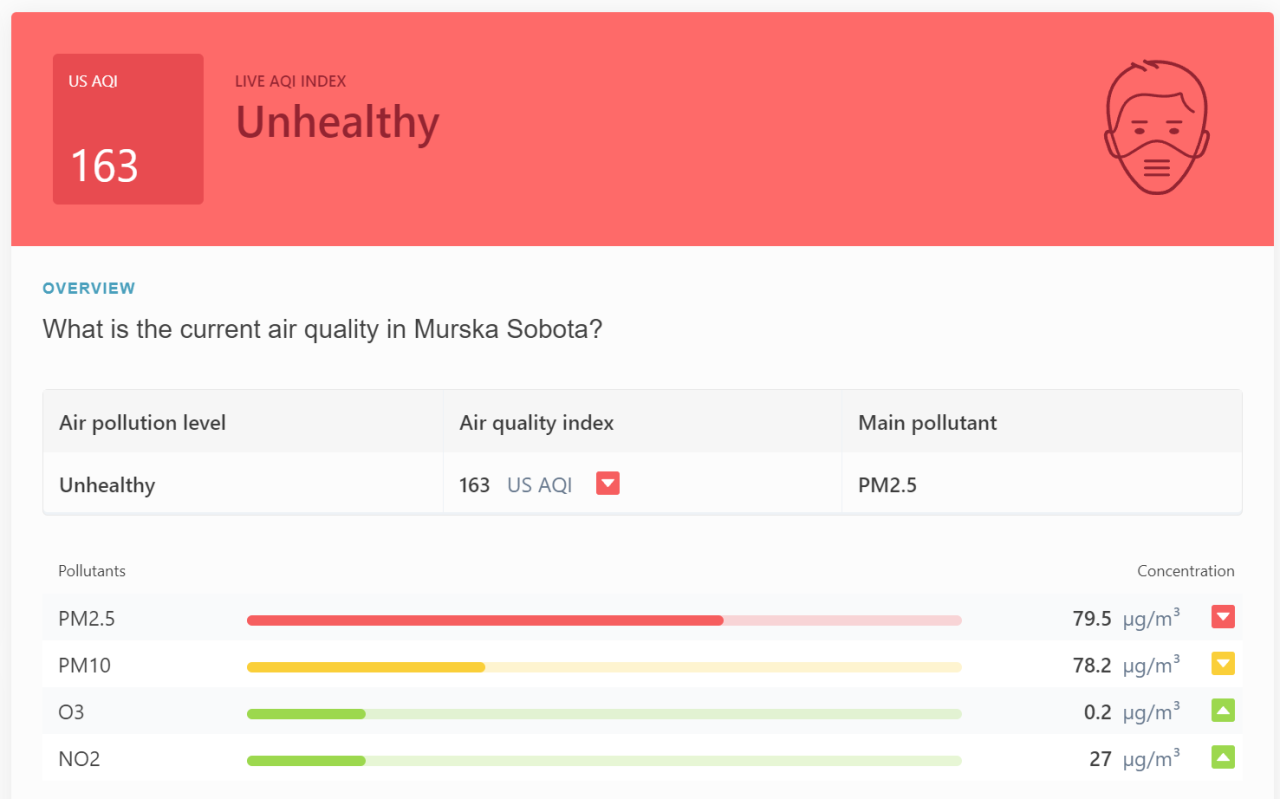 V Murski Soboti v teh dneh koncentracija delcev zelo visoka