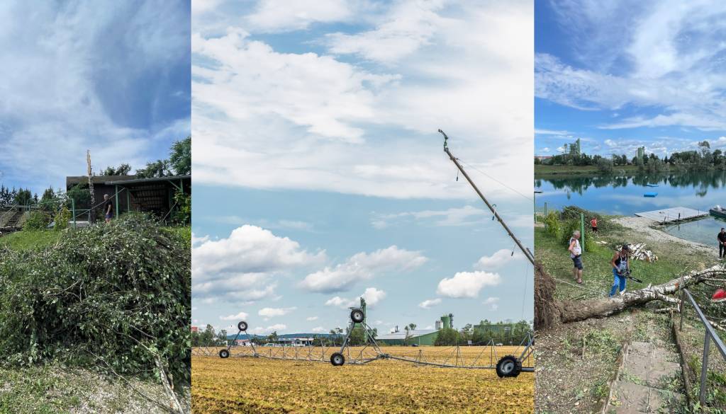 Škoda pa je vidna tudi drugje po mestu, sunki vetra so bili tako močni, da so celo prevrnili namakalni sistem na njivi nasproti Expana.