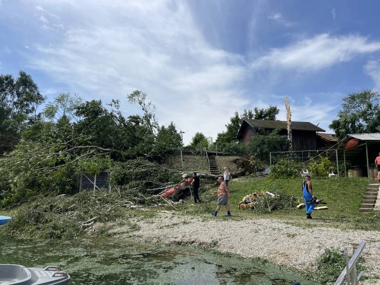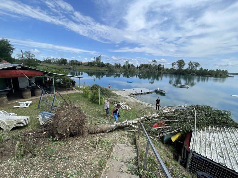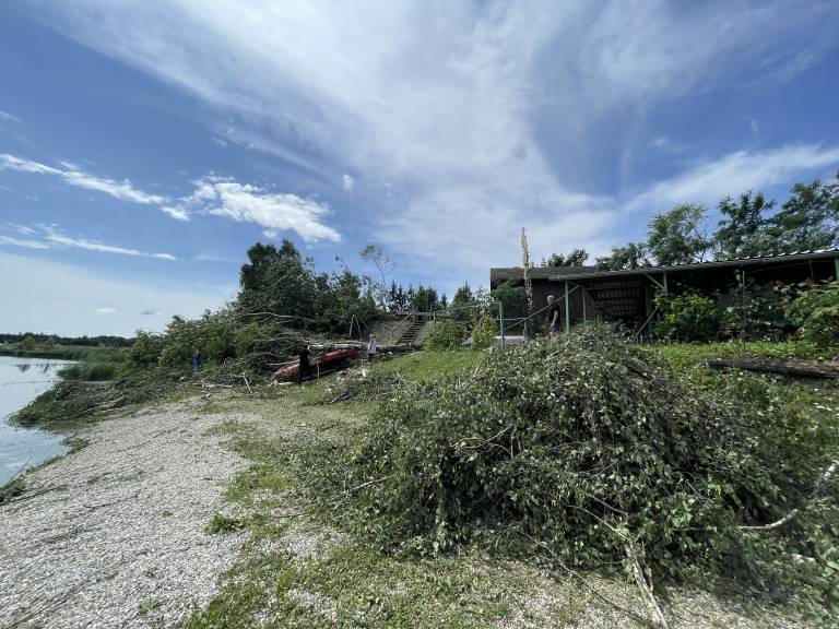 Tudi v neposredni okolici Soboškega jezera je možno opaziti grozovito razdejanje, zaradi burnega vremena se je podrlo več tamkajšnjih dreves, posledice neurja sicer že odpravljajo.