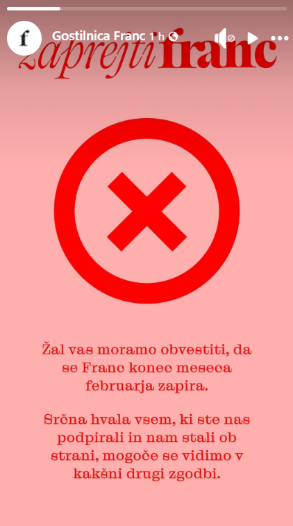»Žal, vas moramo obvestiti, da se Franc konec meseca februarja zapira. Srčna hvala vsem, ki ste nas podpirali in nam stali ob strani, mogoče se vidimo v kakšni drugi zgodbi.«