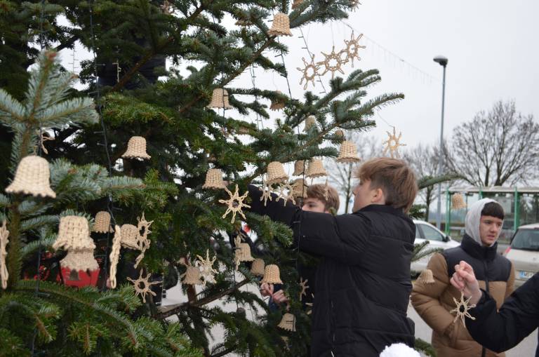 Okraske so letos izdelale občanke, ki ročno ustvarjajo iz ličja, pridružili pa so se jim: