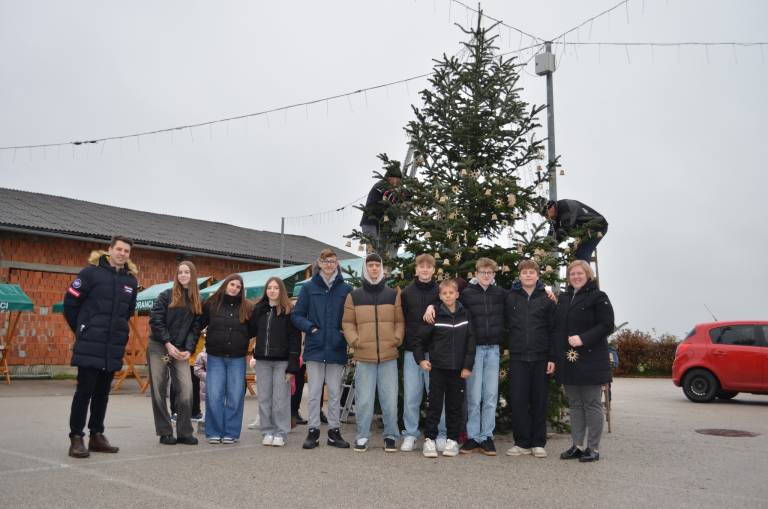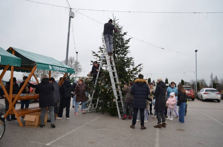 V Odrancih okrasili občinsko jelko, ki bo jutri zasijala v prazničnih lučkah.