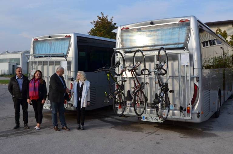 Razvojna agencija Sinergija je v okviru projekta Transdanube.Pearls nabavila dva nosilca za kolesa za avtobuse. V sodelovanju z Avtobusnim prometom Murska Sobota d. d., ki je oba nosilca namestilo na svoja avtobusa, ki vozita po Pomurju, bo tako v naši regiji vzpostavljena nova storitev, ki bo potnikom omogočila prevoz koles z avtobusi na javnih linijskih prevozih.