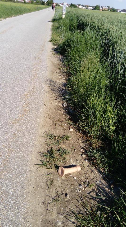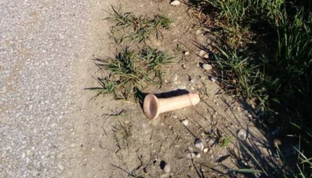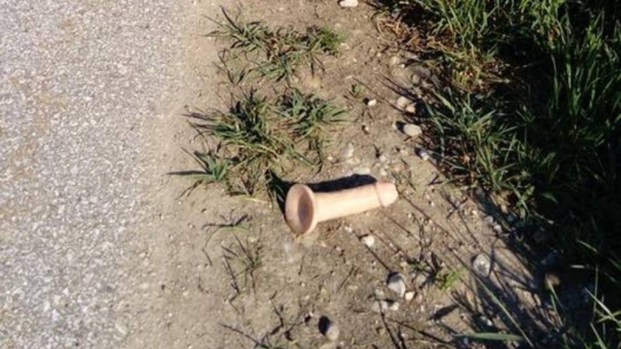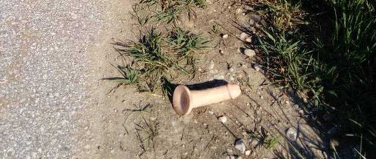 Na cesti med Turniščem in Renkovci vsaj do včeraj ni bilo ležečega policaja, ta pa se je pojavil kar preko noči. No, vsaj tako je zapisal eden od uporabnikov Facebooka, ki je naletel na spolni pripomoček in ga označil za "ležečega policaja".