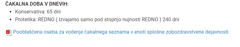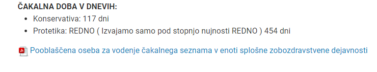 Najkrajša čakalna doba 65 dni, za protetiko se čaka vse do 454 dni