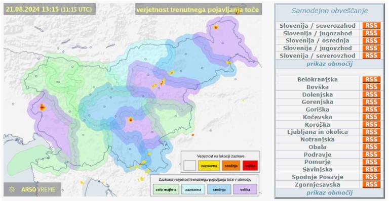 Agencija za okolje Republike Slovenije je izdala opozorilo pred veliko verjetnostjo pojava toče v Pomurju.