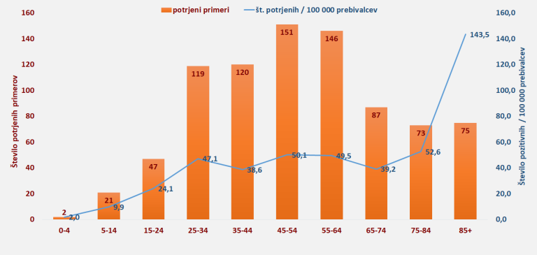 Med obolelimi je 401 moški in 440 žensk.