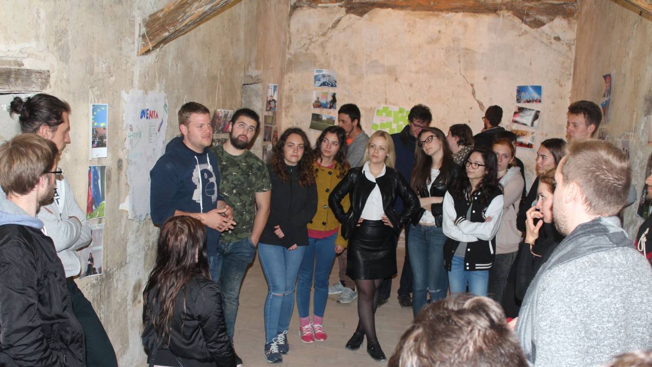 Včeraj je v galeriji v prostorih Raziskovalno izobraževalnega središča Dvorca Rakičan potekala predstavitev Erasmus+ projekta EVROPA MIRU z razstavo fotografij in izdelkov ustvarjenih na mladinski izmenjavi.