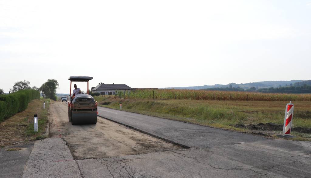 Na odseku, dolgem skoraj 300 metrov, podjetje Pomgrad izvaja obnovo, ki vključuje odstranitev starega asfalta in popolno preplastitev ceste z novim asfaltom.