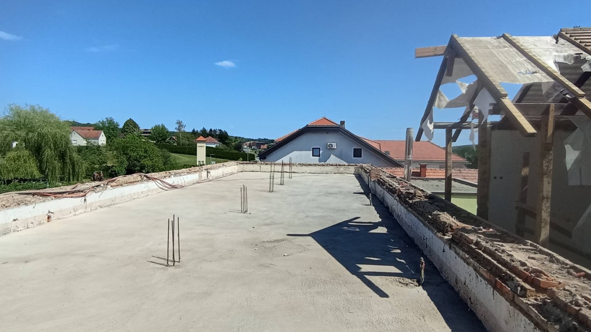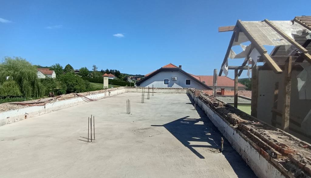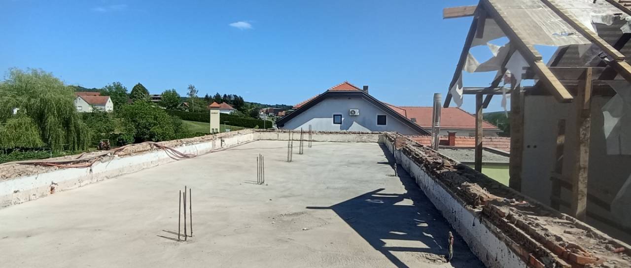 Trenutno izvajalci opravljajo krovska in tesarska dela, ki jim bodo sledila zidarska dela ter postopna ureditev notranjih prostorov.