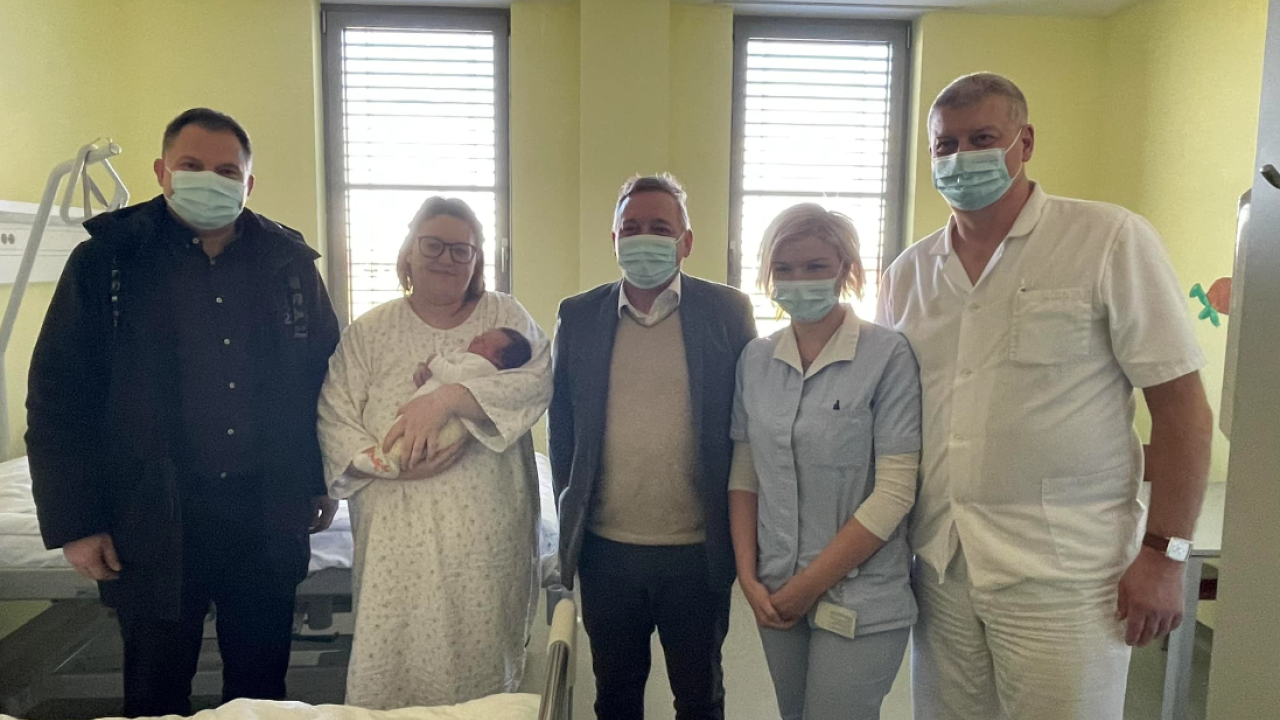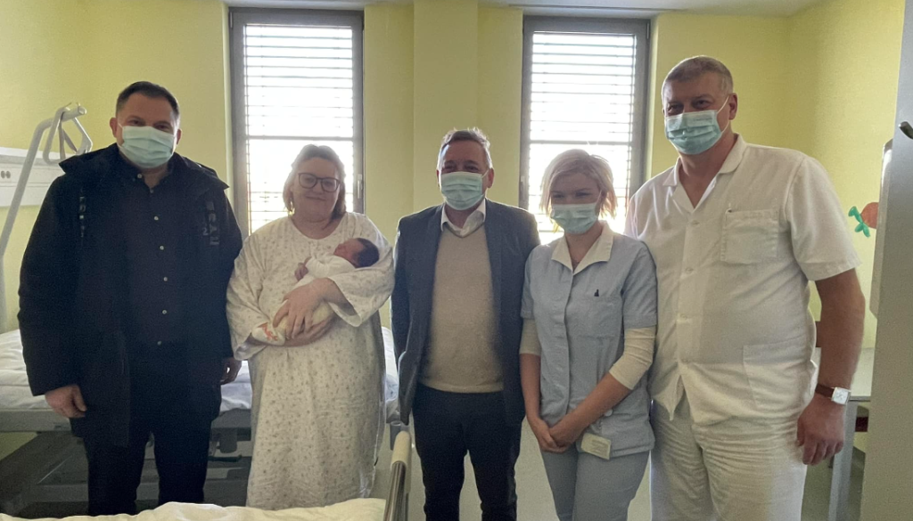Presrečno mamico in novorojenko je skupaj z direktorjem Splošne bolnišnice Murska Sobota Romanom Ratkaijem in predstojnikom porodnišnice obiskal tudi Damjan Anželj, župan Mestne občine Murska Sobota.