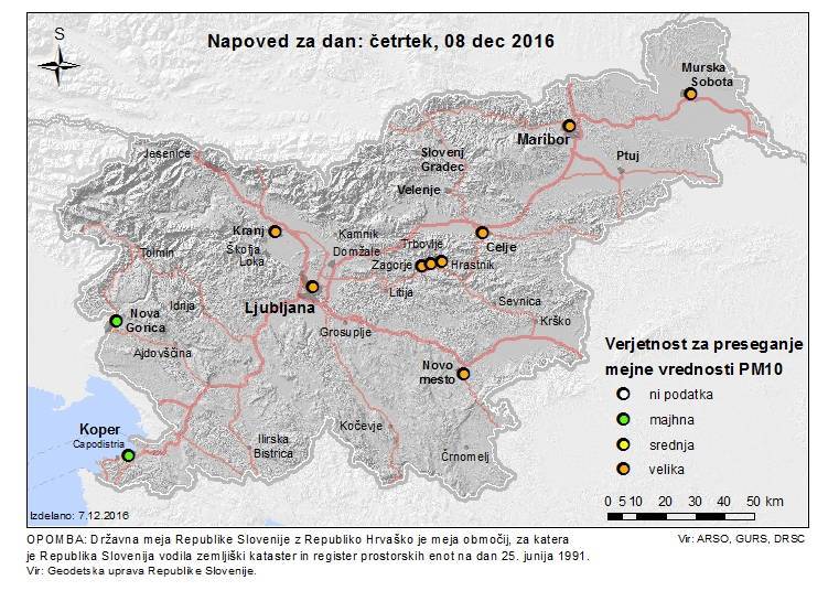 Na spletni strani Agencije RS za okolje je navedeno, da danes in jutri pričakujejo preseganje mejne vrednosti trdih delcev PM 10 v zraku v Mariboru, Celju, Murski Soboti, Zagorju, Hrastniku, Trbovljah, Ljubljani, Kranju in Novem mestu, na Primorskem preseganj ne pričakujejo.