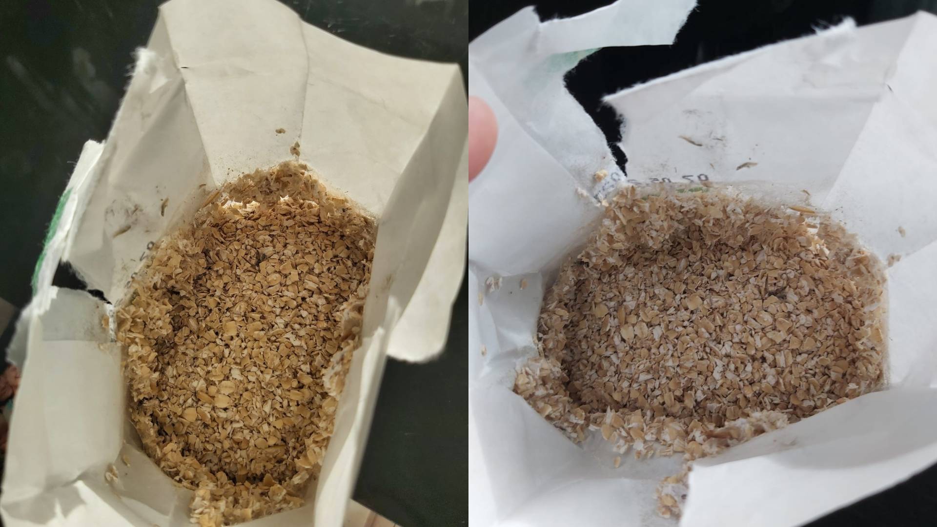 V Facebook skupini Mamice čvekamo se je pojavila fotografija paketa ovsenih kosmičev, kupljenih v Tušu. Po navedbah članice skupine so bili kosmiči kupljeni v enem izmed ptujskih Tušev.