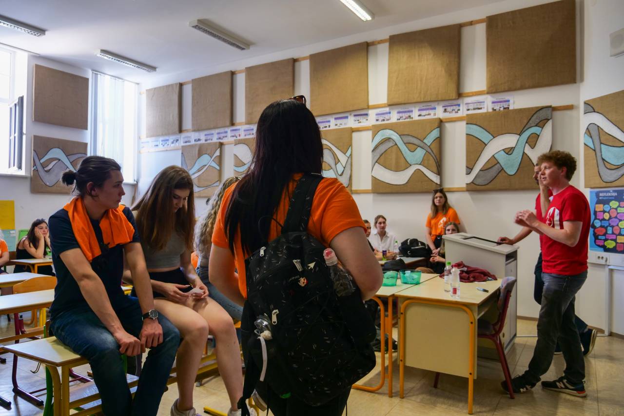 Na otvoritvi so dijaki poslušali predavanje slovenske režiserke in scenaristke Marije Zidar.