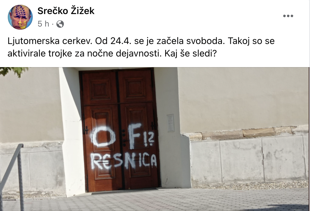 Po družbenih omrežjih danes kroži fotografija, na kateri so vidna dela vandalov, ki so se ponoči spravili nad vrata ljutomerske cerkve.