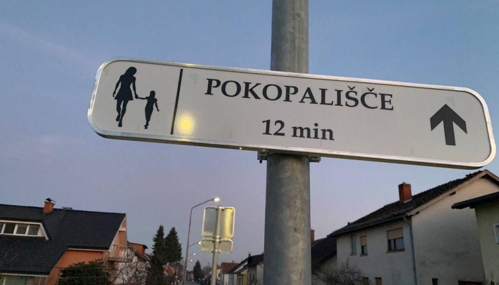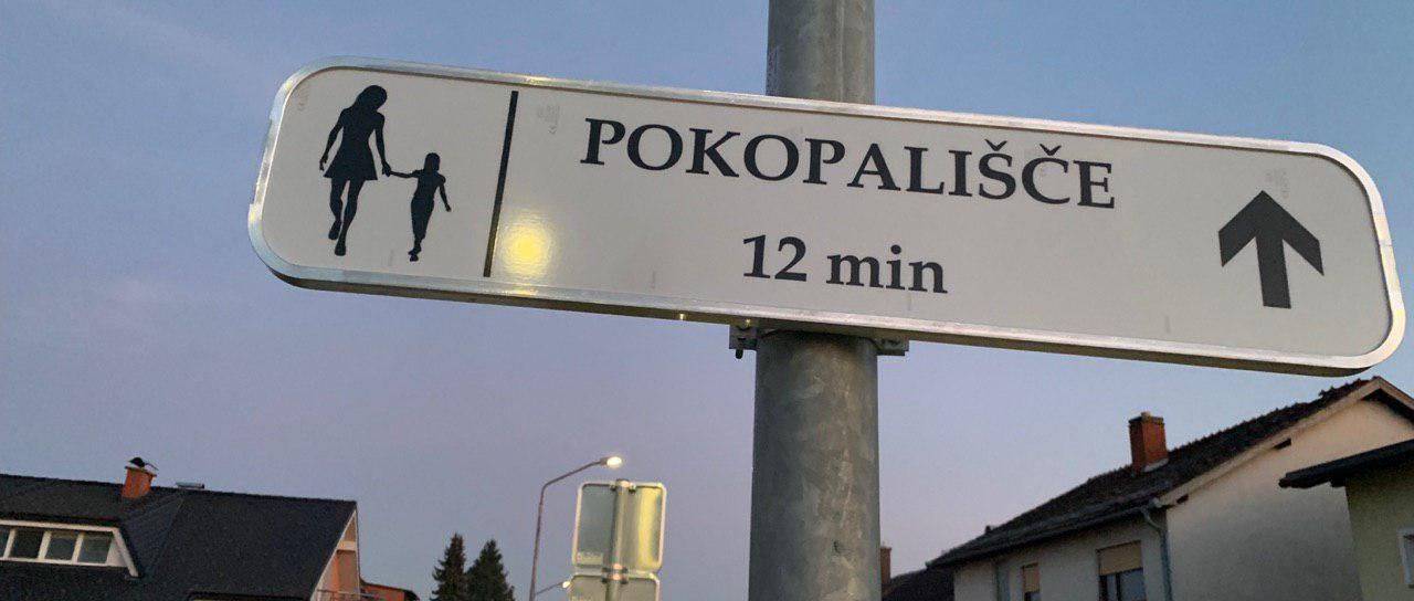 V križišču Trstenjakove in Tomšičeve ulice v Murski Soboti lahko opazite usmerjevalno tablo, ki vas napoti proti pokopališču, na levi strani omenjene table pa vaše oko ujame mladenko v minici, ki pod roko vodi otroka. V prvem trenutku bi morda pomislili, da vas mladenka vabi na pokopališče, a temu ni tako. Za pojasnila smo se obrnili na soboško občino, če pa se malce pošalimo, pa lahko dodamo, da boste po poti morda vendarle naleteli na kakšno mladenko v minici.