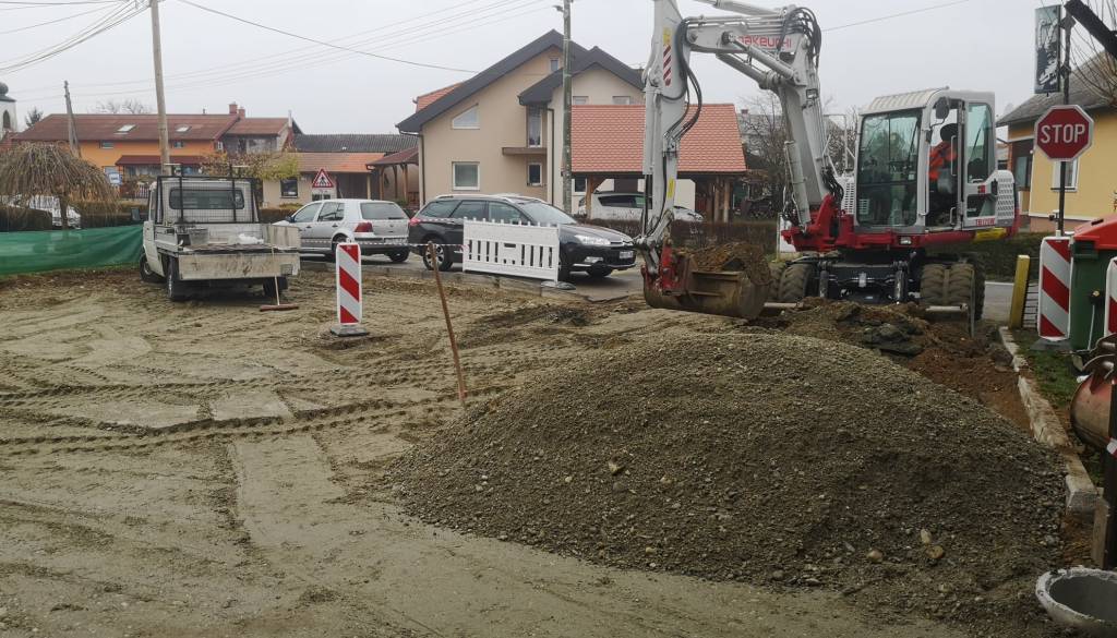 Pred vaško – gasilskim domom v Markišavcih je izbrani izvajalec Komunala začel z gradbenimi deli za ureditev dvorišča z asfaltiranim parkiriščem.