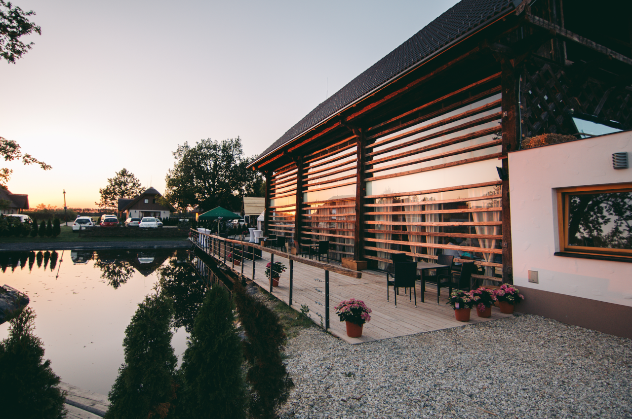 Kozolcu so iz ene strani dogradili kuhinjo in toaletne prostore, z druge strani pa ga pustili v svoji izvorni obliki, da se iz njega razprostira pogled na jezerce in celotno Panonsko vas.