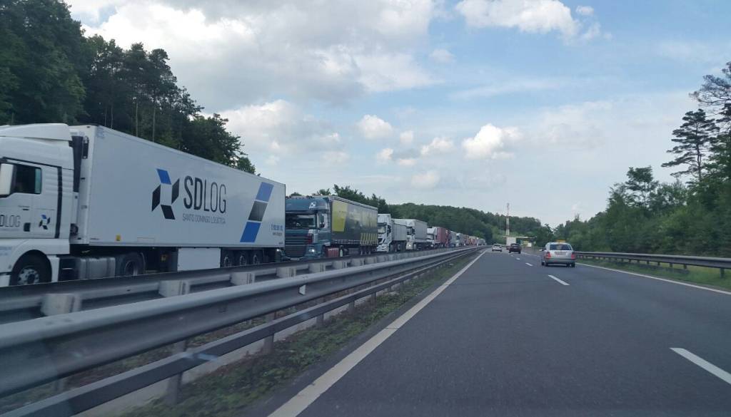 Po najnovejših informacijah je namreč zaradi večjega števila tovornih vozil nastala že 14-kilometrska kolona. Kolona tovornih vozil pa se začenja že na mostu čez reko Muro.