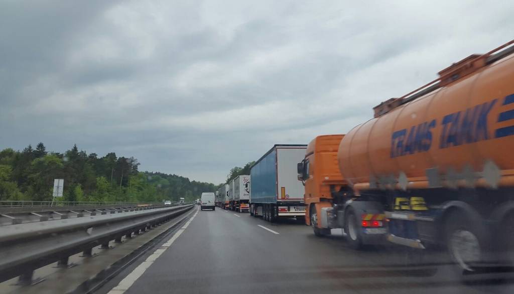 Danes je prvi delovni dan po podaljšanem prazničnem vikendu, ki so ga zaradi prepovedi vožnje tudi kamionarji morali preživeti na počivališčih. Omejitev prometa tovornega prometa oziroma vozil, katerih največja dovoljena masa presega 7,5 t, v Sloveniji namreč velja ob nedeljah in praznikih ter dela prostih dnevih od 8. do 21. ure. Sprostitev tovornega prometa je tako ponovno povzročila zastoje na pomurski avtocesti. Ti naj bi bili dolgi že devet kilometrov.
