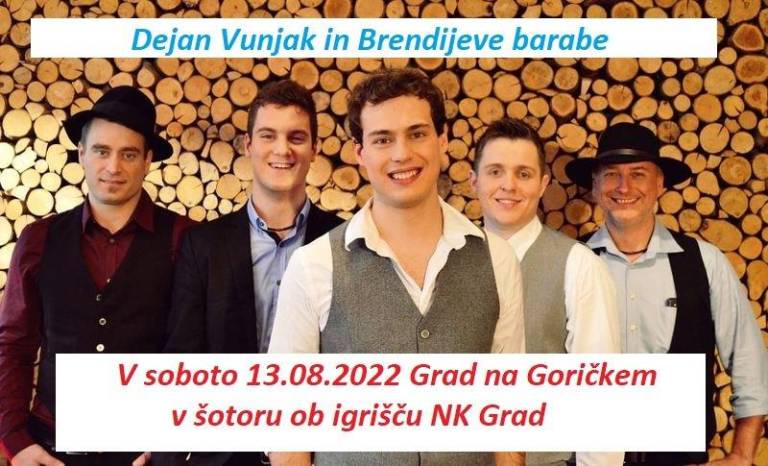 V okviru Velike maše bodo jutri, v soboto, ob 20.00 uri, v šotoru ob igrišču Grad nastopili Dejan Vunjak in Brendijeve barabe.