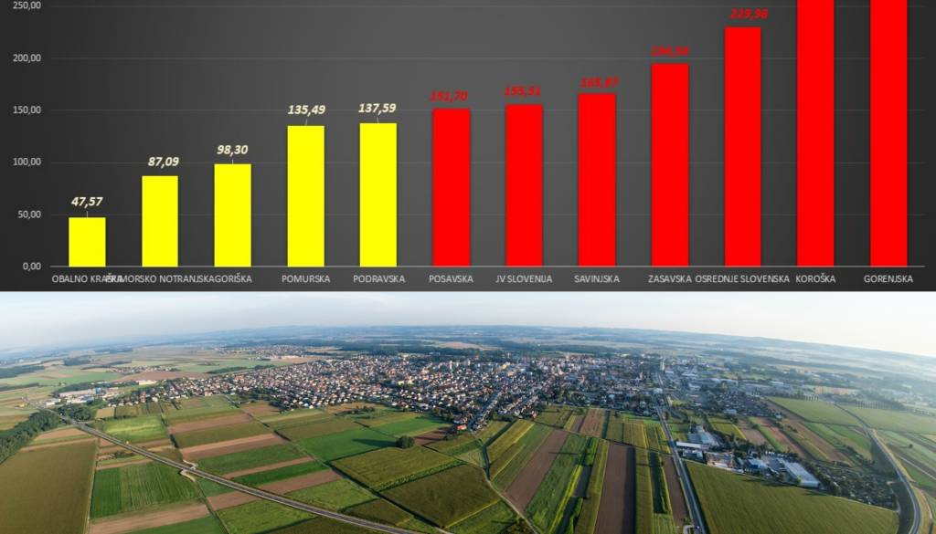 Kot je razvidno iz grafa, sta Pomurska in Podravska regija na meji.