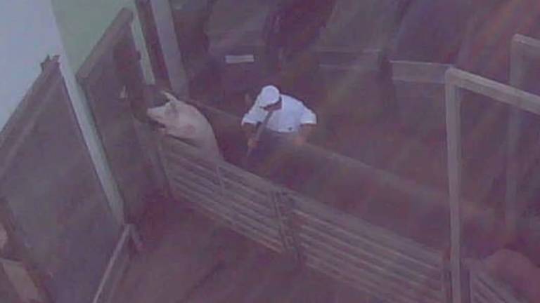 »Na posnetkih je tako videti, da so svinjo zavezali za nogo na klavni tekoči trak brez predhodne omame. Ta svinja je izkrvavitev dočakala v paniki in verjetno pri polni zavesti. Prav tako smo našteli ogromno primerov nepravilne omame z električnim šokom,« poudarjajo v društvu AETP.