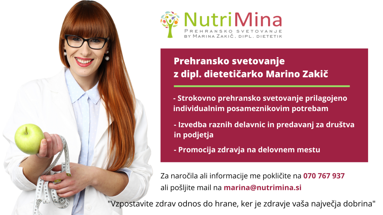 Pogovor o prehranskem svetovanju z dietetičarko Marino Zakič iz podjetja Nutrimina, je nastal v okviru oddaje VITA – Življenje je lepo.