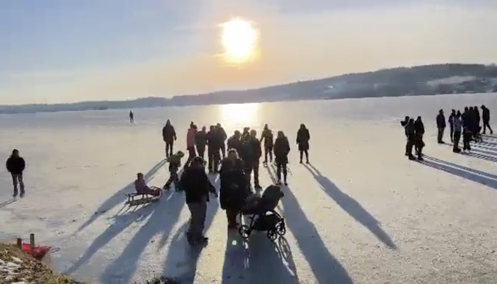 Zamrznjeno jezero v Kraščih izkoristili za športne aktivnosti