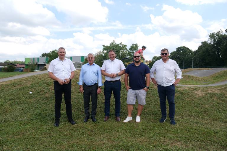 Najprej so se ustavili na nogometnem stadionu v Fazaneriji, kjer poteka dozidava tribun, ki bo omogočila izpolnjevanje pogojev za organizacijo tekem domačih in mednarodnih ekip. Nato so si ogledali novi kolesarski poligon, namenjen predvsem mladim in rekreativnim kolesarjem, ki prinaša sodobne in varne pogoje za športno udejstvovanje.