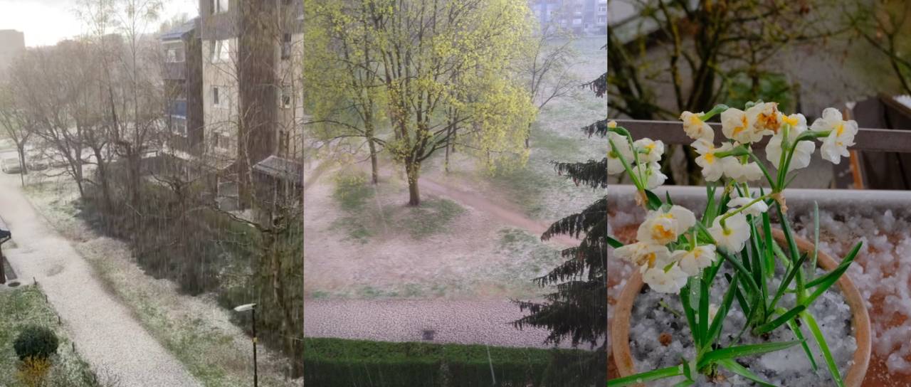 Nevihta, ki je v poznih popoldanskih urah zajela Ljubljano, je s seboj prinesla tudi sodro in točo.