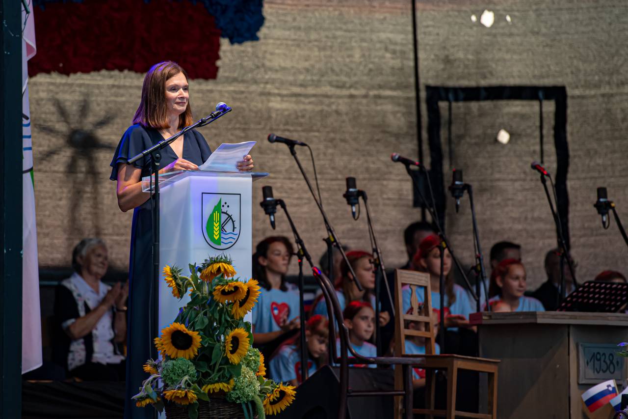 Regijska slovesnost ob prazniku združitve prekmurskih Slovencev z matičnim narodom poteka pod častnim pokroviteljstvom ministrice za kulturo Republike Slovenije Aste Vrečko.