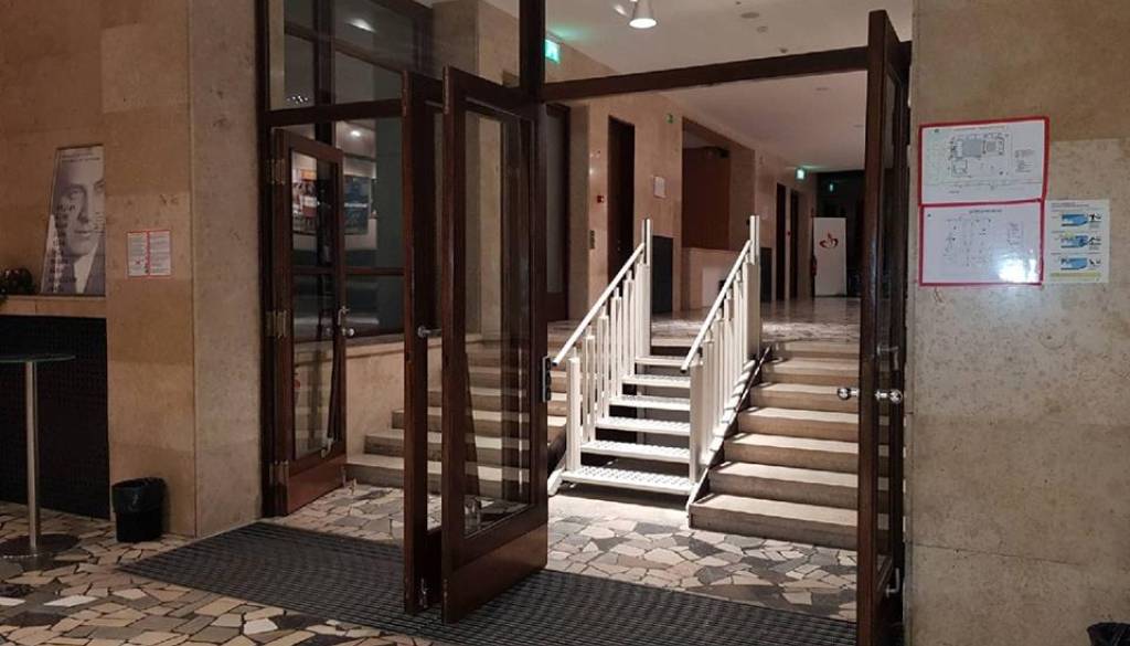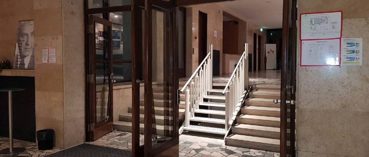 Gledališče Park se ponaša z novo pridobitvijo. Po stopnicah pred dvorano se bodo osebe na vozičku odslej brez težav povzpele s pomočjo posebne dvižne ploščadi.