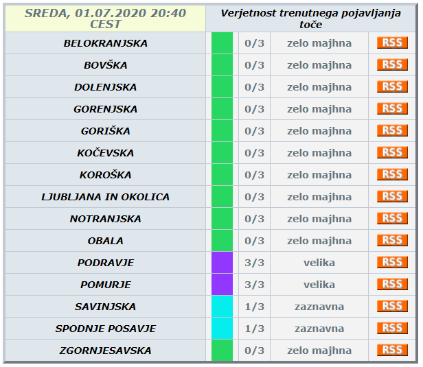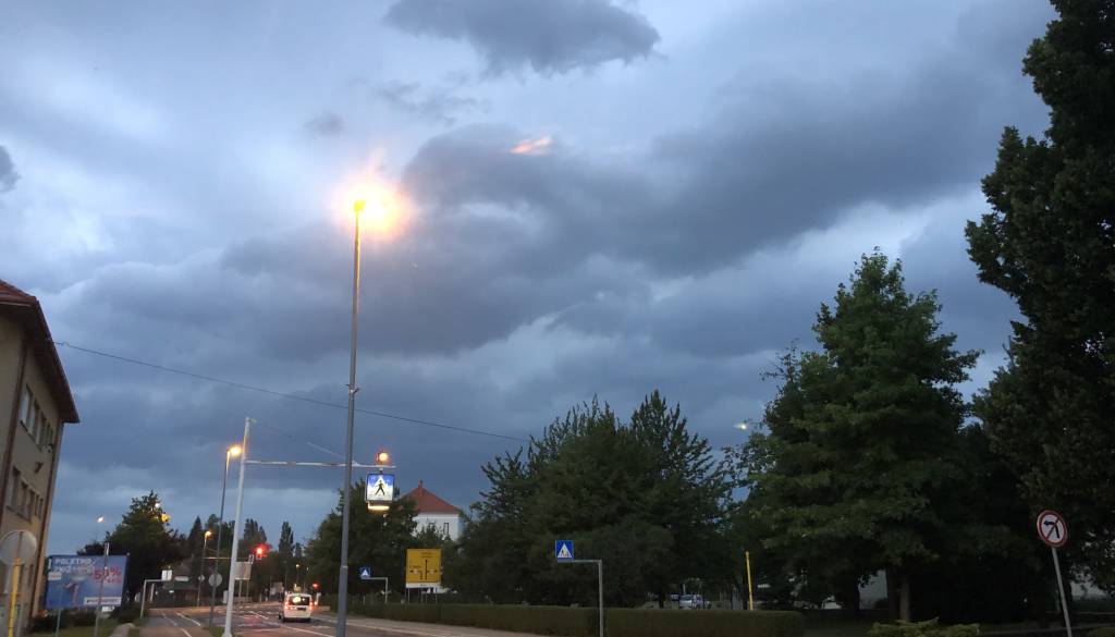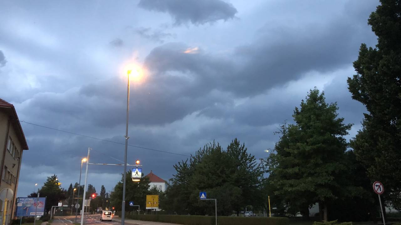 Iz smeri Celja se nevihtni oblaki pomikajo naprej proti vzhodu. Za Podravje in Pomurje so meteorologi razglasili vijoličast alarm.