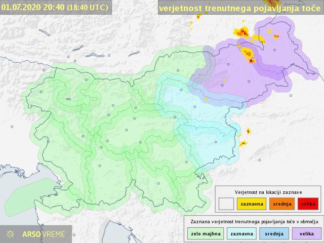 Severno od Ljubljane in nad območjem Kamniško Savinjskih Alp so danes zvečer nastale krajevne nevihte, ki potujejo v smeri proti severovzhodu. Nevihte s silovitimi nalivi in točo so že dosegle Vransko in Celjsko kotlino.