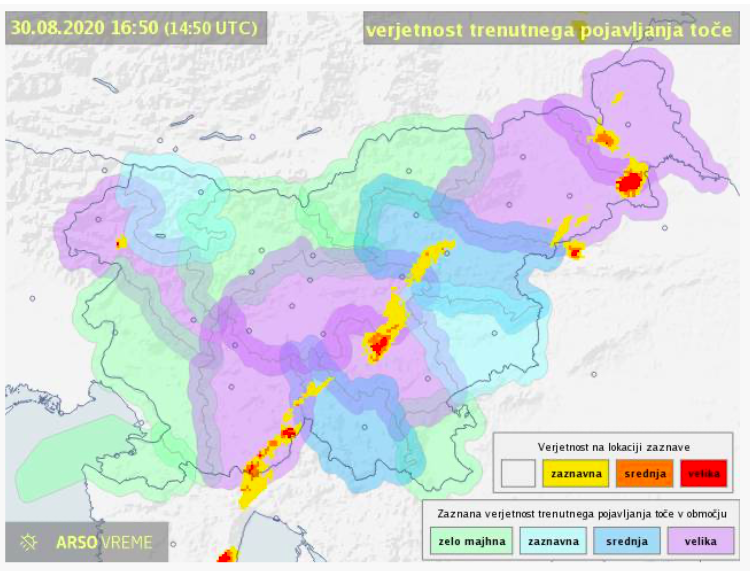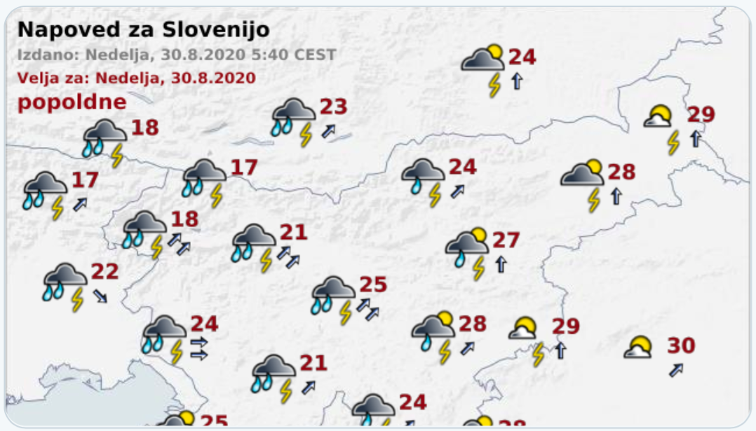 Čez dan se bodo padavine in nevihte od zahoda postopno širile proti vzhodu. Možna bodo krajevna neurja.