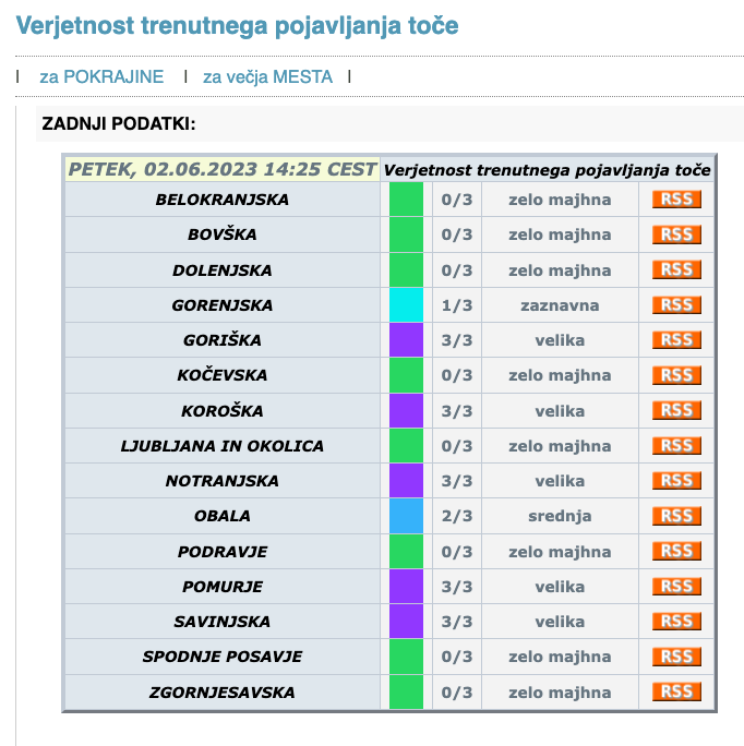Agencija Republike Slovenije za okolje je za Pomurje izdala vijoličasto opozorilo za verjetnost trenutnega pojavljanja toče.