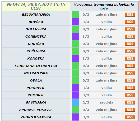Agencija za okolje je izdala vijolično opozorilo zaradi velike verjetnosti pojavljanja toče v Pomurju.
