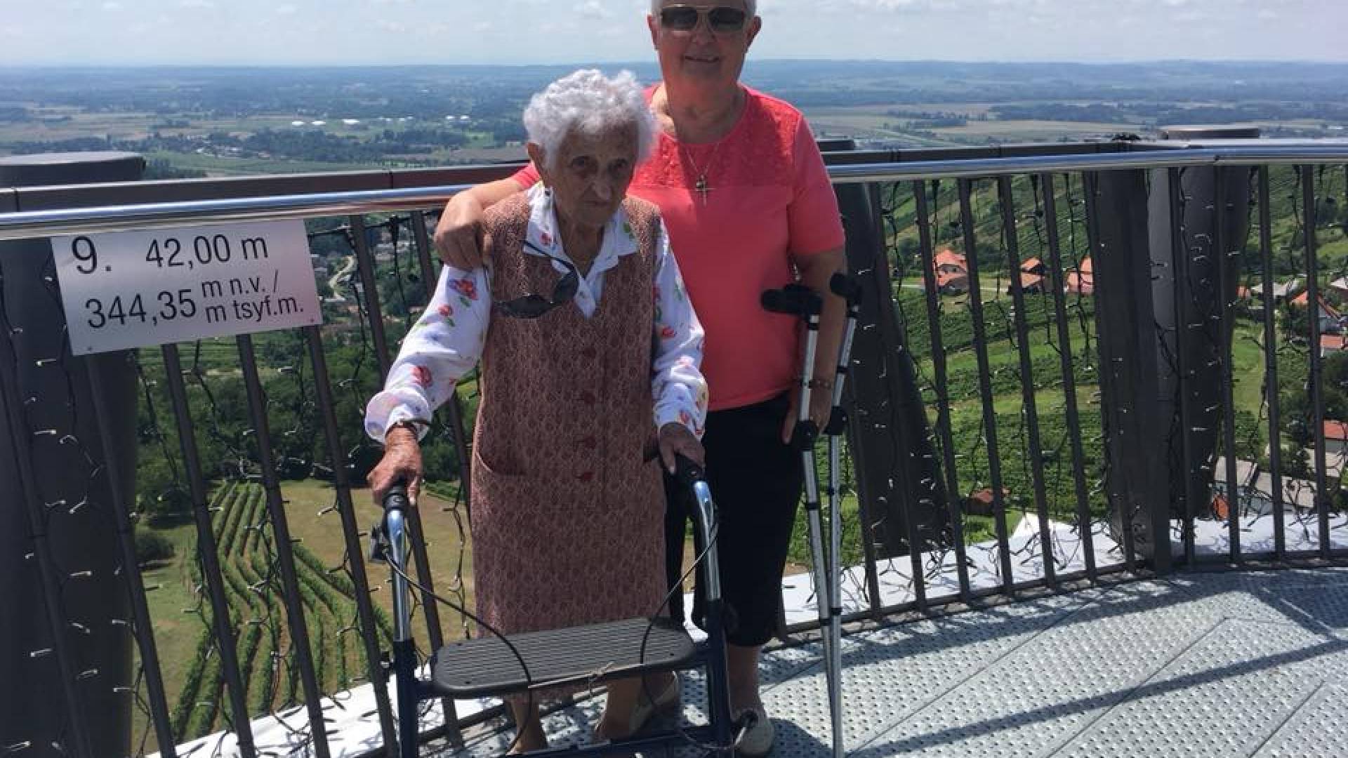 Na razglednem stolpu, ki ruši rekorde je danes najstarejša obiskovalka, 105-letna Radica.