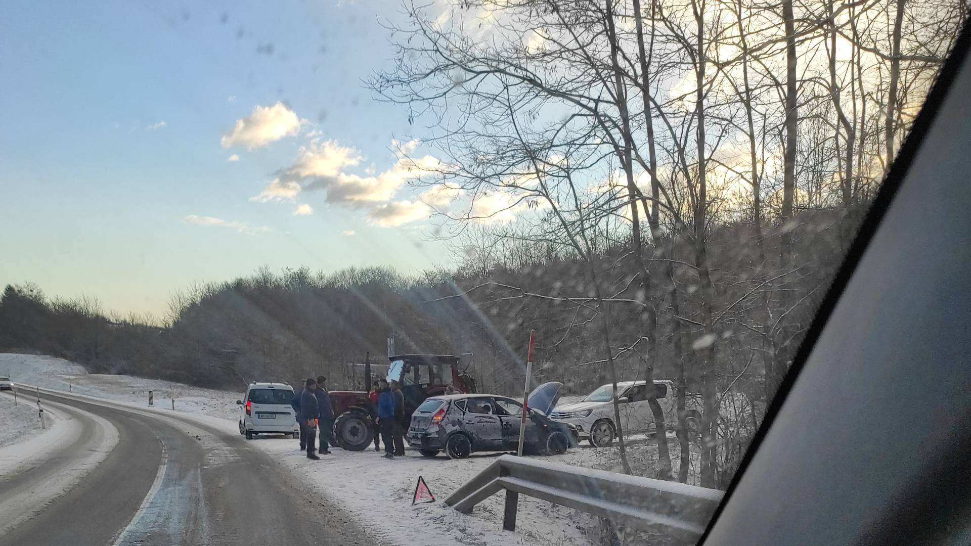 Na Goričkem je čez noč zapadlo nekaj snega. Službe so sicer že začele s posipavanjem, pa vendar je na nevarnem odseku med Stanjevci in Mačkovci vozilo že zdrsnilo iz cestišča. Voznik je tako pristal v bližnjem gozdu.