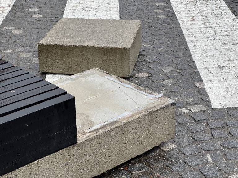 Na Slovenski ulici v središču Murske Sobote je prišlo do poškodovanja klopi. Betonski del klopi, ki je tik ob prehodu za pešce, je razbit in delno premaknjen na cestišče.