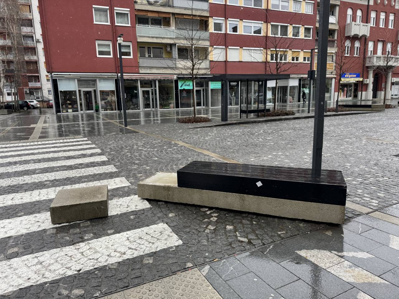 Na Slovenski ulici v središču Murske Sobote je prišlo do poškodovanja klopi. Betonski del klopi, ki je tik ob prehodu za pešce, je razbit in delno premaknjen na cestišče.