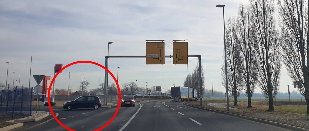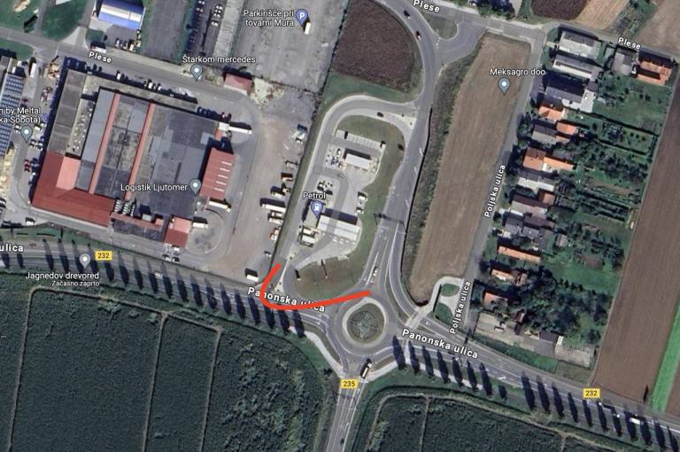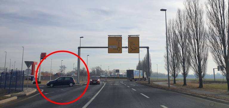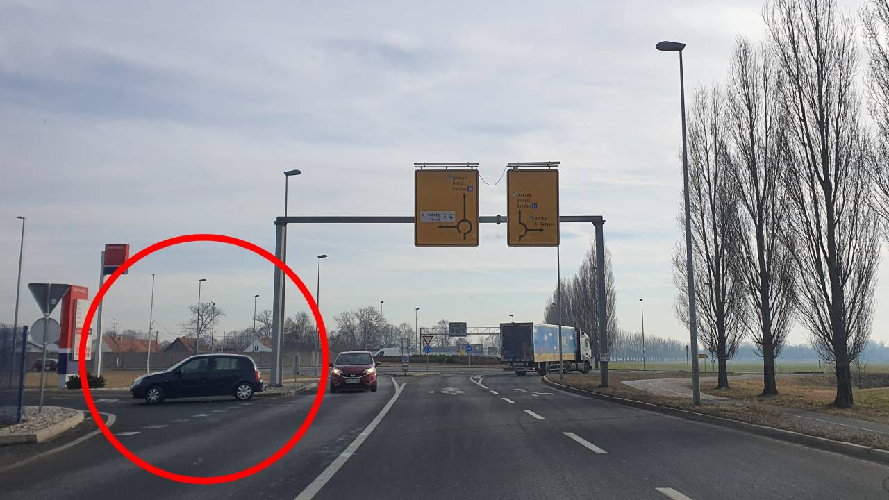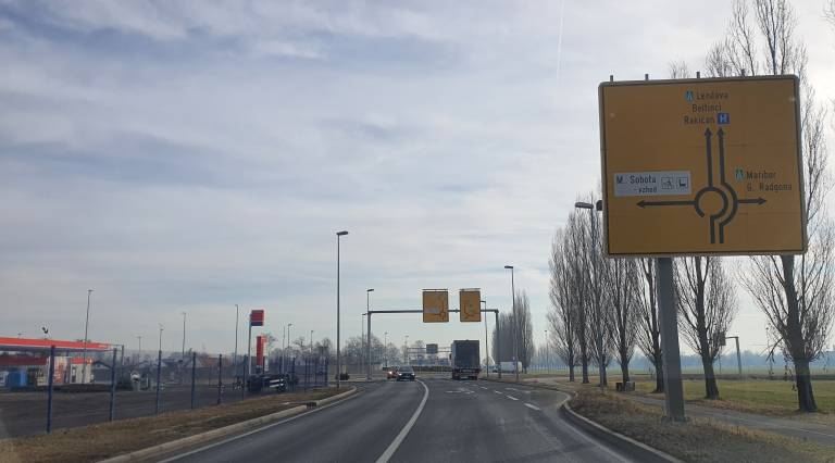 Če se voznik torej pripelje iz Murske Sobote, lahko do bencinskega servisa zapelje tako, da se vključi v krožišče, obrne, zapelje iz krožišča in zavije desno.