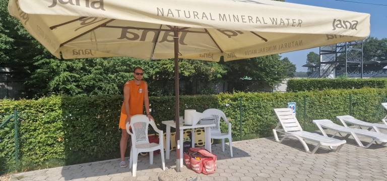 Miha Balajc, reševalec, ki na kopališču skrbi za varnost kopalcev, je povedal, da je pomembno, da se obiskovalci namažejo s kremo in gremo v senco.
