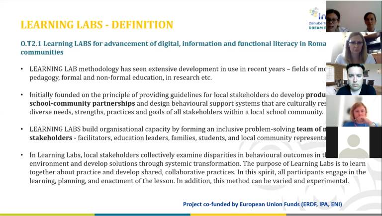 Spletnega dogodka so se udeležili predstavniki vseh projektnih partnerjev, z namenom skupnega načrtovanja pričetka realizacije digitalnih učnih laboratorijev – skupnih, tehnično ustrezno opremljenih prostorov kot katalizatorjev znanja, izkustvenega učenja in digitalnega dostopa. Člani pogosto spregledanih skupnosti lahko v njih pridobijo znanja in veščine za večjo zaposljivost in aktivnejše udejstvovanje v družbi.