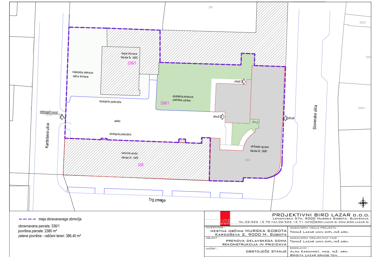 Načrtovana dozidava avle in dvigala bo izvedena v notranjosti zemljišča ob vhodu v stavbo mestne uprave iz dvoriščne strani. Prav tako je načrtovan nadstrešek pred vhodom v stavbo z dvoriščne strani.
