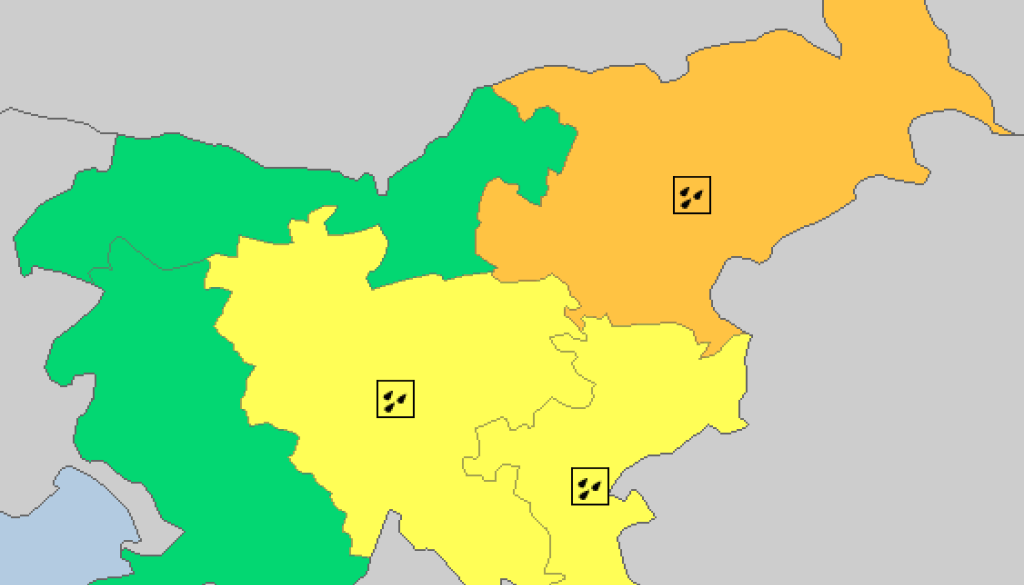 Agencija za okolje je za severovzhod države razglasila oranžni alarm. Alarm velja tudi jutri do šestih zjutraj. Zapisali so, da lahko danes pričakujemo na Štajerskem in v Prekmurju obilne padavine, ki bodo v soboto zjutraj ponehale. Ponekod lahko pride do manjših razlivanj na območjih pogostih poplav.