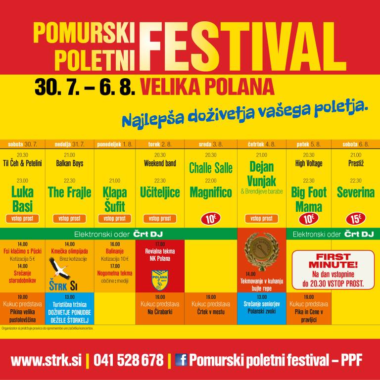 Za več informacij obiščite spletno stran www.strk.si ali Facebook stran Pomurski poletni festival – PPF. Lahko se oglasite tudi v občinskih prostorih Občine Velika Polana v TIC ŠTRK ali pokličete na 041 528 678.