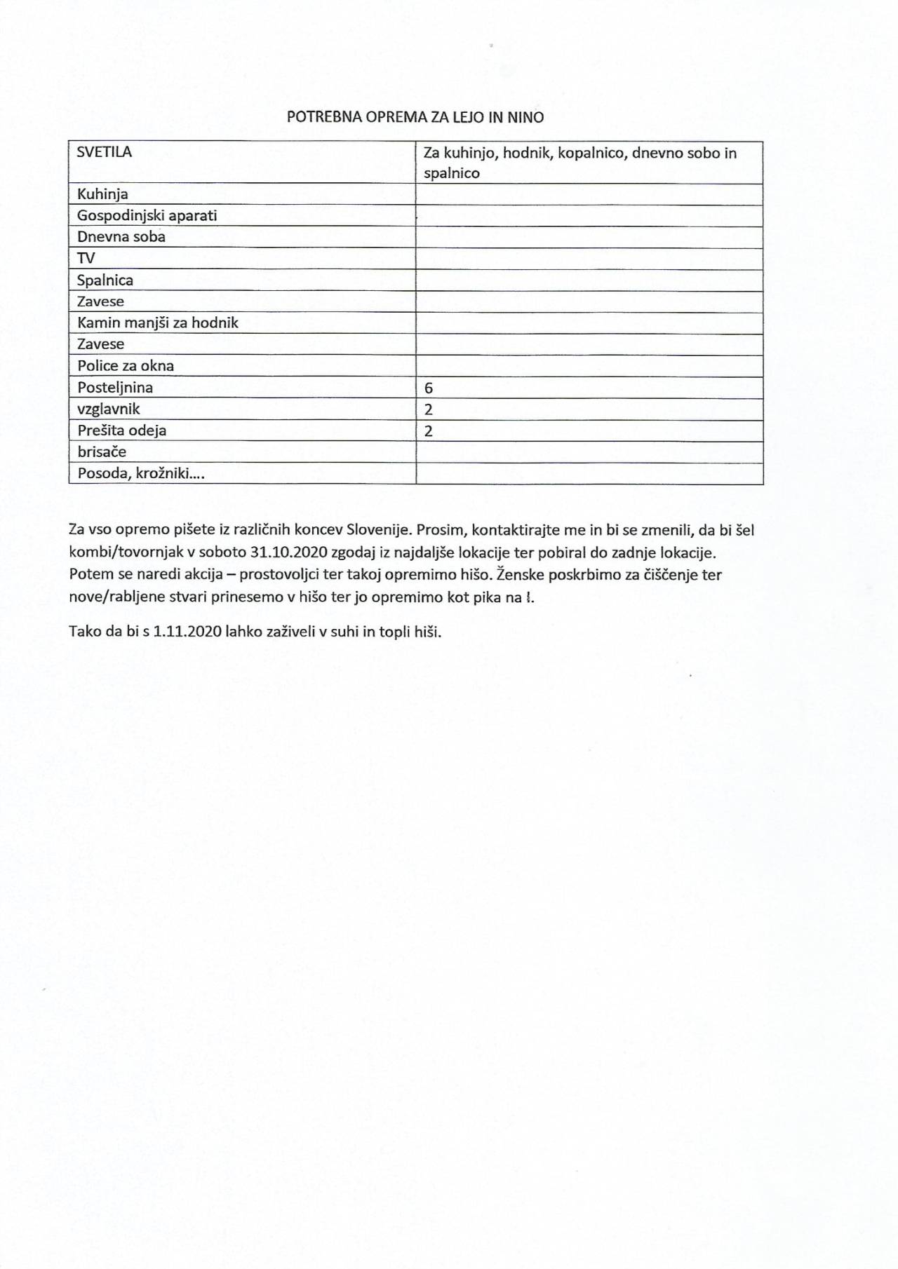 Vse, ki bi želeli pomagati prosijo, da pokličete na 040754617.