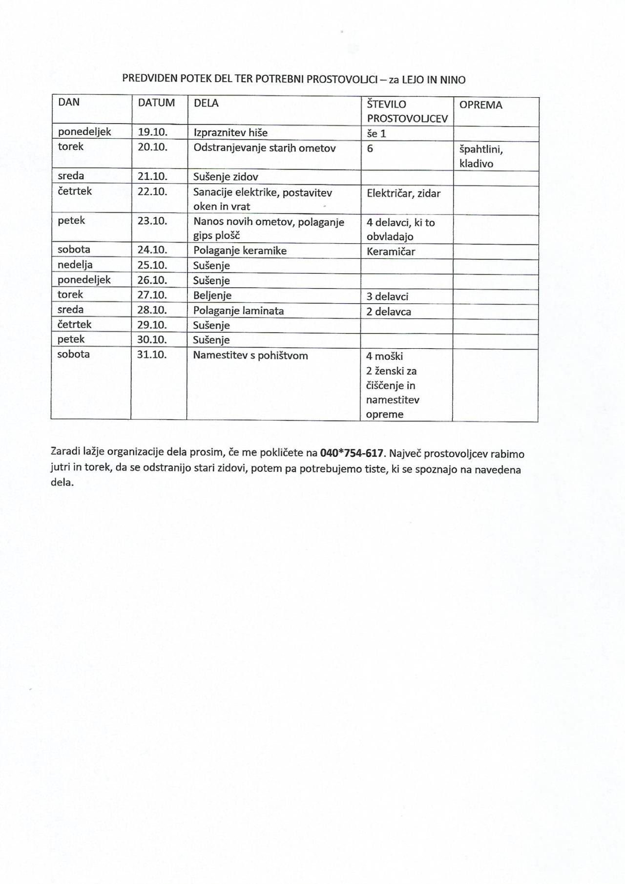 Ob tem so predstavili tudi natančno časovnico, ki si jo lahko ogledate spodaj. Ob tem pa so zapisali, da potrebujejo prostovoljce, ki bi pomagali pri prenovi hiše.